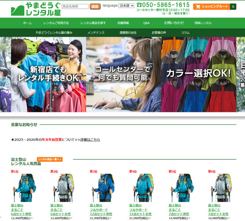 <ご注意>やまどうぐレンタル屋ではツアーのお申し込みはできません。
